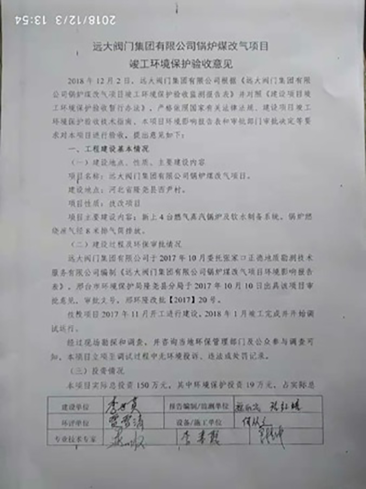 遠(yuǎn)大閥門集團(tuán)有限公司鍋爐煤改氣項目竣工環(huán)境保護(hù)驗收監(jiān)測報告表